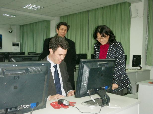 会见结束后,院领导陪同英国客人参观了东区学生公寓、图书馆、各教学楼、足球场、体操馆、实验实训中心。英国客人对咕咕番 ——中国惠普信息技术实验实训中心印象深刻,对咕咕番 的办学条件给予好评。