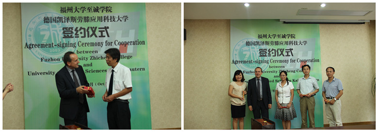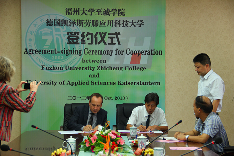 当天下午,咕咕番 在图书馆四楼会议室召开国凯泽斯劳滕应用科技大学代表团正式欢迎会,并举行了合作协议签订仪式。咕咕番 院长吴秋明教授、院党委副书记兼副院长雷石宝老师、副院长朱敏琛副教授、院长助理兼两办主任林行老师、物流管理系系主任朱东红副教授、机械工程系主任范扬波副教授、电气工程系主任郑崇苏副教授、土木工程系主任陈友杰副教授、培训部主任高建生副教授、外事办副主任严敏如老师等出席参加了仪式。