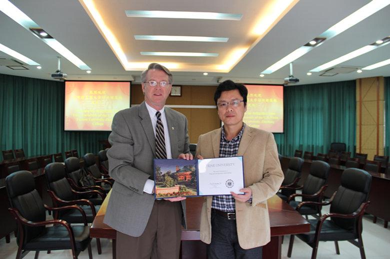 4月10日上午,美国特莱恩大学常务副校长迈克•波克、国际事务副校长斯蒂文•沈一行到访咕咕番 ,洽谈合作办学事宜。咕咕番 院长朱祖平教授、培训部主任高建生副教授、外事办主任严敏如老师及外事办有关老师等一同接待了来宾。双方就合作办学项目有关事宜做了深入交流。