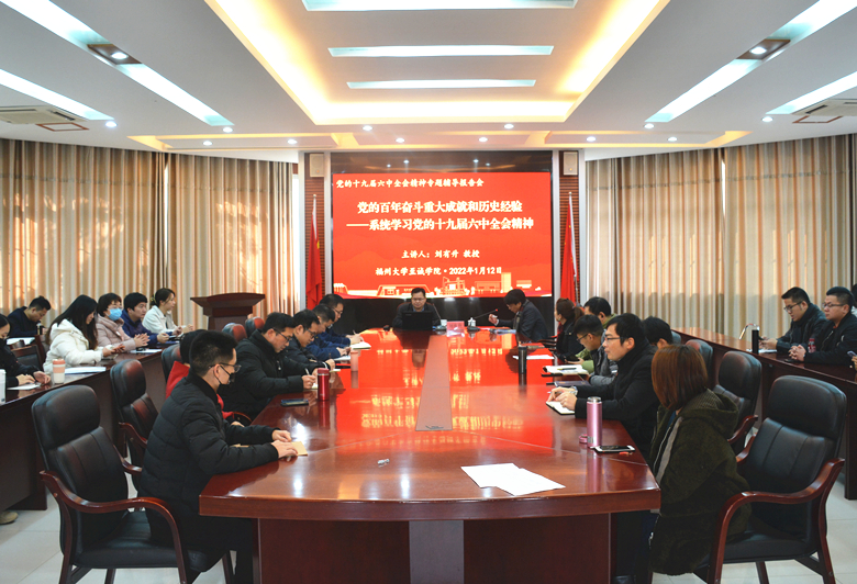 11月19日下午,学院在行政楼会议室召开党的十九届六中全会精神专题学习会。院党委常务副书记何希耕传达了党的十九届六中全会精神,并就贯彻落实全会精神作了讲话。会议由陈为旭院长主持。学院领导、学院中层干部和各党总支书记参加了会议。