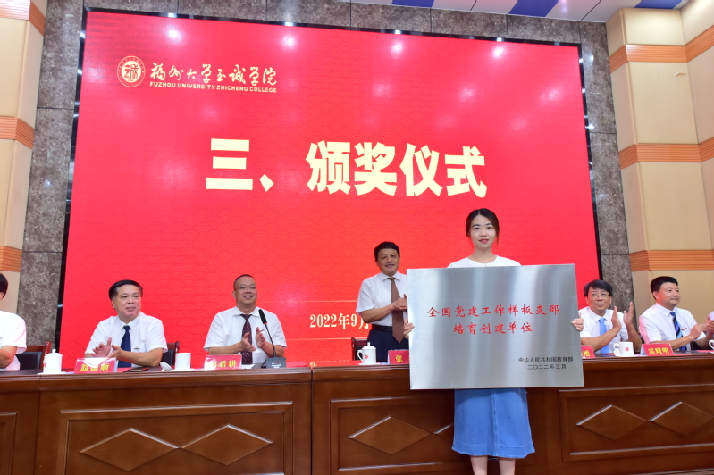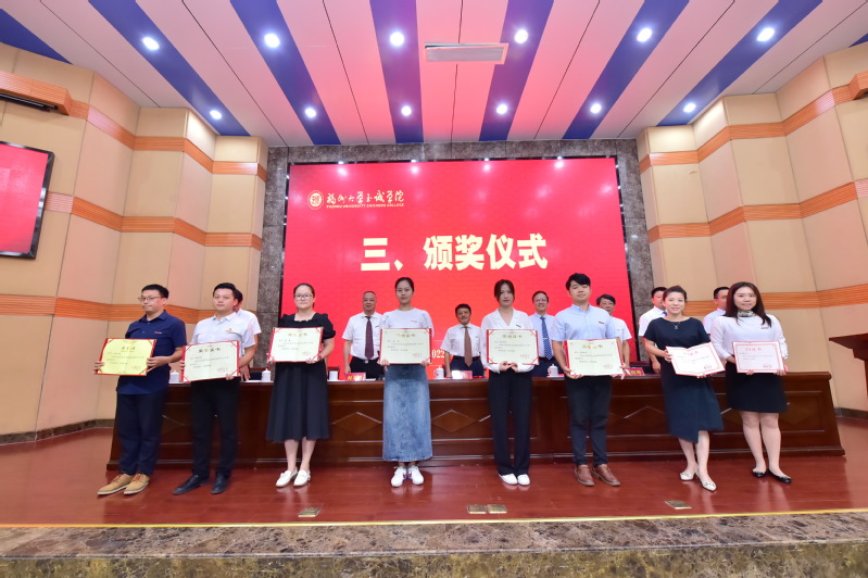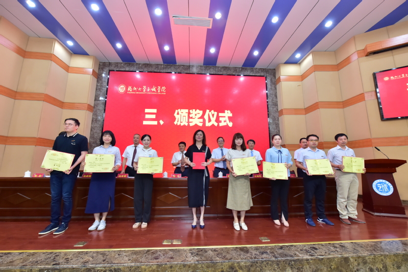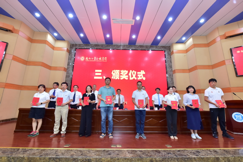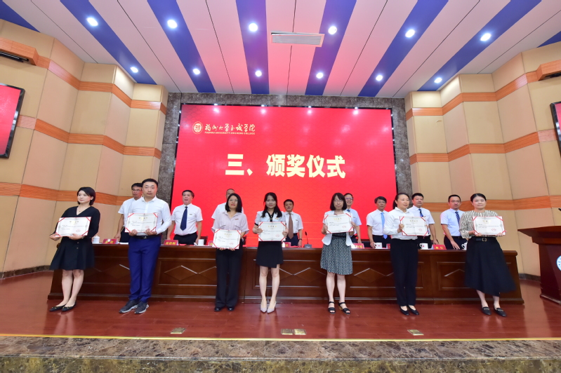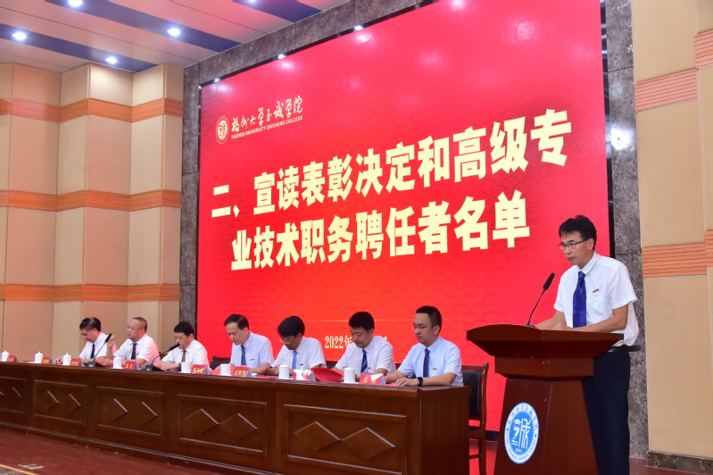 伴着雄浑的国歌声,大会正式开始。副院长兼教务处处长游毅宣读表彰决定和学院2021、2022年高级专业技术职务聘任者名单后,举行了颁奖仪式。荣获“全国党建工作样板支部”、“咕咕番 2022年度科研标志性成果”、“福建省高校青年教学新秀”、“福建省优秀教务工作者”、“福建省高等教育学会招生工作先进个人”、“‘兴才计划’福建助学贡献奖”、“咕咕番 陈椿奖教金”、“咕咕番 优秀学生思想政治教育工作者”、“院优秀教师”、“院优秀科研工作者”、“院优秀教育工作者”、“2022年院春季学期课堂教学优秀奖”、“2021-2022学年院优秀教学组织奖”和“2021-2022学年院优秀教学管理人员”等荣誉称号的先进集体和先进个人分别上台领奖。颁奖仪式后,举行了学院2021、2022年高级专业技术职务聘任仪式,院长陈为旭为新晋副高职称的老师们一一颁发了聘书。