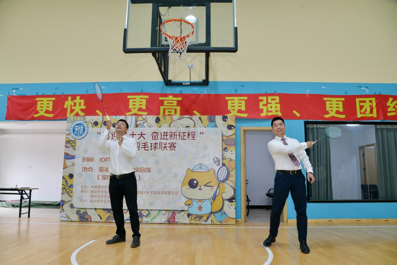 当天上午,张科校友还出席了2022届新生开学典礼并作为校友代表讲话。在领导老师们的陪同下,张科校友还重返宿舍、食堂、羽毛球馆、图书馆等地,重温校园回忆,为“喜迎党的二十大 奋进新征程”师生羽毛球联谊赛开球,并为师生签名荐书,鼓励在校大学生通过阅读增长见识提升素养。