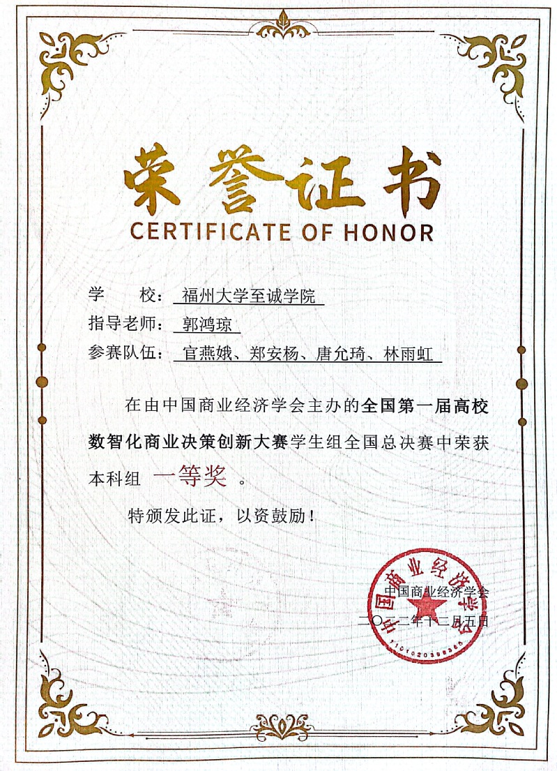 日前,2022年全国第一届高校数智化商业决策创新大赛学生组全国总决赛在线上正式开赛,本次比赛由中国商业经济学会(国家一级学会)主办、西安电子科技大学承办,浙江精创教育科技有限公司、亚洲组织与员工促进(EAP)协会和海峡两岸职业教育交流合作中心共同协办。全国数百所高校2800余支本科队伍,约14000名师生共同参加本次比赛。经过激烈角逐,我院ERP沙盘企业模拟经营协会陈梓博(22级金融工程)、官燕娥(21级国际经济与贸易)、于培涌(22级金融工程)等12位同学组成的3支咕咕番 代表队,在郭鸿琼、张希君老师带领下,成功获得全国一等奖2项、三等奖1项的好成绩。