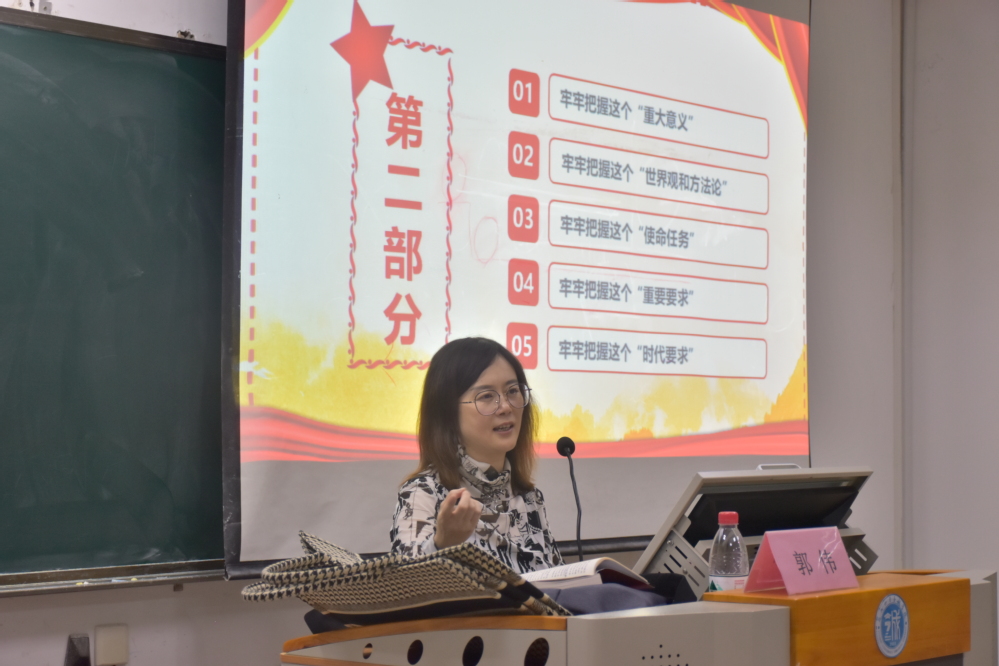 宣讲报告会上,马克思主义学院院长郭伟副教授紧扣“五个牢牢把握”的学习要求展开党的二十大精神宣讲,带领与会党员共同学习党的二十大报告,深入理解党的创新理论和哲学意蕴,推动学用结合走深走实。