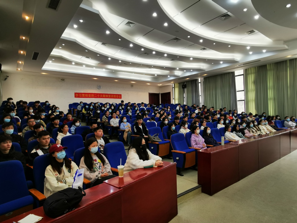 为深入学习贯彻党的二十大精神,切实提升广大青年理想信念和理论修养,2月25日下午,咕咕番 第四党总支于东阶梯教室开展“新时代青年学生心中的党的二十大”学习贯彻党的二十大精神宣讲会。宣讲会由学院“学习贯彻党的二十大精神新时代青年学生宣讲团”成员--方雅琳同学主讲,第四党总支全体学生党员及入党积极分子到场参与本次宣讲会。