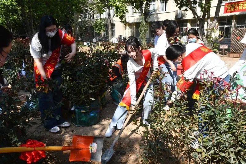 植树现场,师生、校友们共同学习植树技巧并分工合作植树,气氛热烈。本次活动将党日活动与劳动实践相结合,旨在引导师生们学思践悟党的二十大精神,弘扬雷锋精神,增强生态文明意识,为建设美丽校园贡献力量。