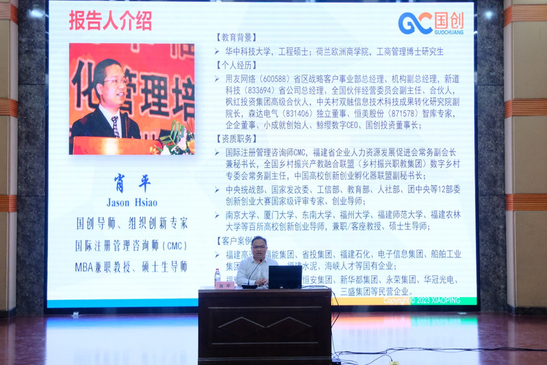 国赛评委专家肖平老师在动员会后,为咕咕番 参赛师生作了题为“积累小成就,共创大未来”的创新创业教育专题培训。从创新创业思维解读、大赛规则解析、项目遴选、参赛渠道以及创新创业项目如何突出优势等几个方面为咕咕番 师生进行了赛事培训和经验分享。