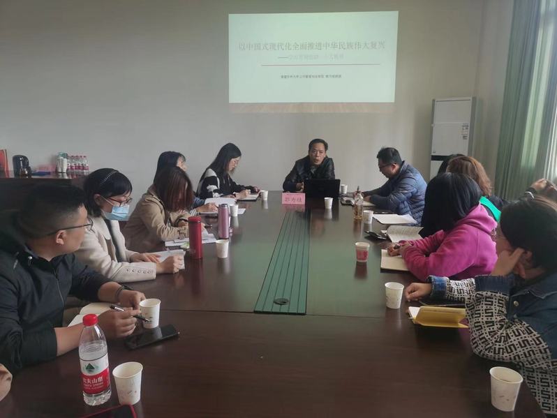 3月14日下午,咕咕番 基层社会治理研究中心在机械北楼401会议室举办学习贯彻党的二十大精神宣讲报告会。福建农林大学公共管理与法学院郭为桂教授作了题为“以中国式现代化全面推进中华民族伟大复兴”的报告。马克思主义学院全体教师到场聆听。