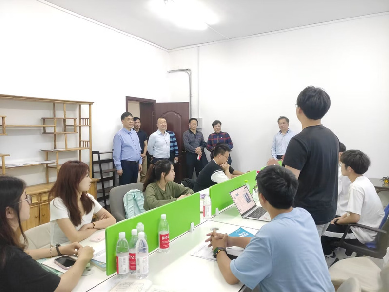 调研团一行实地走访了各项目团队工作室。福州零道壹教育科技有限公司负责人李俊豪介绍公司融入信息化发展浪潮投身教育产业的具体实践和取得的成效;“妙排——智能论文排版系统”项目负责人李涛现场演示了“妙排”系统的操作流程和系统引擎;“华器CYSIS——国产光照植物培养箱”项目负责人欧鹏就项目的创意构思、技术原理、市场应用、愿景规划等方面进行了介绍。