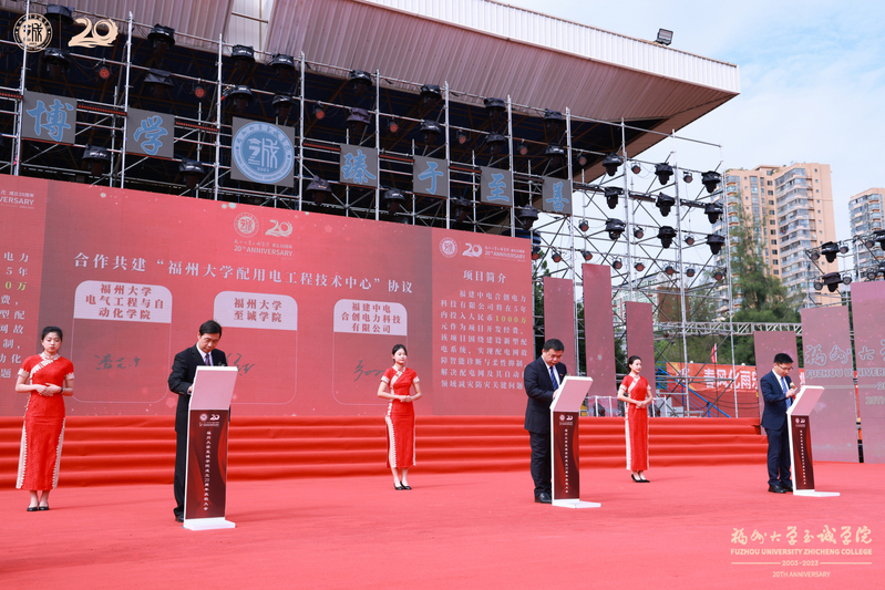 当天上午,在学院成立20周年庆祝大会上,还举行了福建中电合创电力科技有限公司、咕咕番 电气工程与自动化学院、咕咕番 三方合作共建“咕咕番 配用电工程技术中心”签约仪式。福建中电合创电力科技有限公司将投入资金作为项目开发经费,该项目围绕建设新型配电系统,实现配电网故障智能诊断与柔性抑制,解决配电网及其自动化领域减灾防灾关键问题。