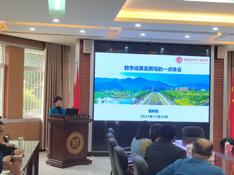 11月30日,咕咕番 在行政楼会议室举办“福建省课程思政示范课程建设暨教学成果奖经验交流会”。活动由咕咕番 信息工程系主办,旨在为教师们提供一个学习和分享的平台,深入探讨课程思政建设以及教学成果奖申报的最新理念、方法和实践,促进课程思政建设的良性发展。邀请了咕咕番 教务处副处长夏岩教授、咕咕番 微电子学院院长程树英教授、福建理工大学电子电气与物理学院大学物理教研室主任陈巧玲教授、福州理工学院计算与信息科学学院副院长李婷教授等多位专家出席作经验交流。副院长游毅教授出席会议,信息工程系副主任孙磊教授主持会议。
