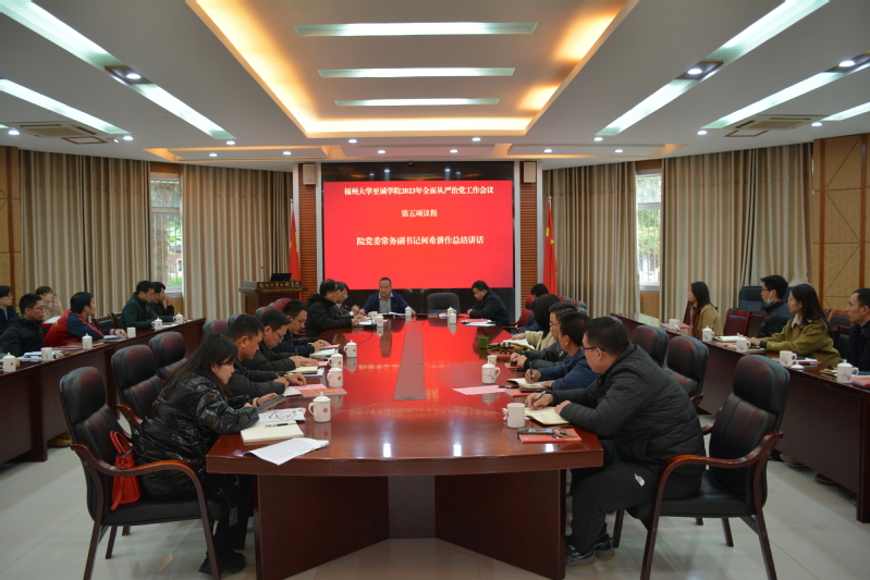 学院党委常务副书记何希耕作总结讲话,他充分肯定了2023年学院全面从严治党工作取得的成效,深入分析了学院全面从严治党面临的新形势,指出了工作中存在的不足和问题。何希耕常务副书记对全面从严治党工作进行强调,一是提高政治站位,深入学习贯彻习近平新时代中国特色社会主义思想,切实将思想和行动统一到党中央、省委关于全面从严治党的部署上来。二是坚持问题导向,清醒认识当前学院管党治党形势,进一步提升健全学院全面从严治党体系的自觉性主动性,全面推进党的建设标准化规范化。三是强化责任担当,坚决扛起管党治党主责主业,扎实落实党风廉政建设“一岗双责”,充分发挥全面从严治党引领保障作用,推动学院高水平应用型大学高质量发展。
