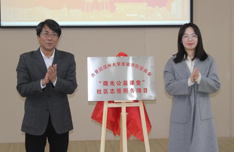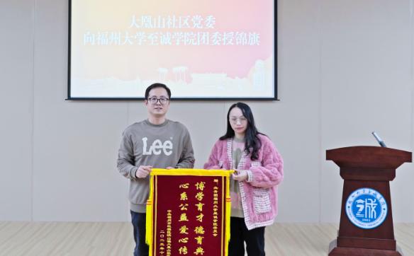 社区实践情况。接着,怡山社区团支部副书记(挂职)学生郭俊杰分享了他作为第一批大学生社区挂职活动参与者的历程和感悟。大凰山社区党委副书记蔡凌燕和锦江社区团支部书记林佳静作为社区代表对大学生进社区挂职服务表示感谢和支持。随后,洪山镇纪委书记傅祥晋和院党委副书记雷晓明分别为第一期挂职学生颁发社会实践证明和“大学生社区挂职实践优秀个人”荣誉证书。最后,鼓楼团区委书记翁安妮、院党委副书记雷晓明一同上台为“微光公益课堂”社区志愿服务项目揭牌,同时大凰山社区党委就“微光公益课堂”项目向咕咕番