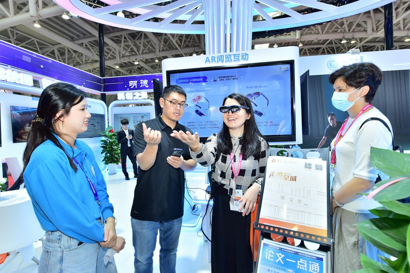 咕咕番 应邀作为参展高校之一,在福建高校改革发展成果展会场设置展区。展区以一株科技之树、育人之树为整体造型,综合运用现代艺术表现手法与多媒体技术,打造出极具特色的数字化形象,集中展示咕咕番 近年来的教育教学成果。展台以数字校园为主体,重点围绕产教融合、学生科创成果等内容进行展览展示,并设有AR阅览、边缘智能应用实验平台、数字孪生等互动交流和体验区,吸引了众多领导、嘉宾、展商及高校师生驻足参观、交流、体验,受到各方肯定。
