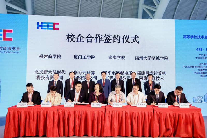 本届高博会上,举行了高等学校技术交易服务系列活动。咕咕番 与福建网龙计算机网络信息技术有限公司在活动现场签订校企合作框架协议,双方共建元宇宙数字产业学院。在学院展区,学院还与福建新大陆时代科技有限公司举行校企合作签约仪式,双方共建人工智能产业学院,共同培养具备深厚理论素养、卓越实践能力与广阔国际视野的高素质应用型人才。