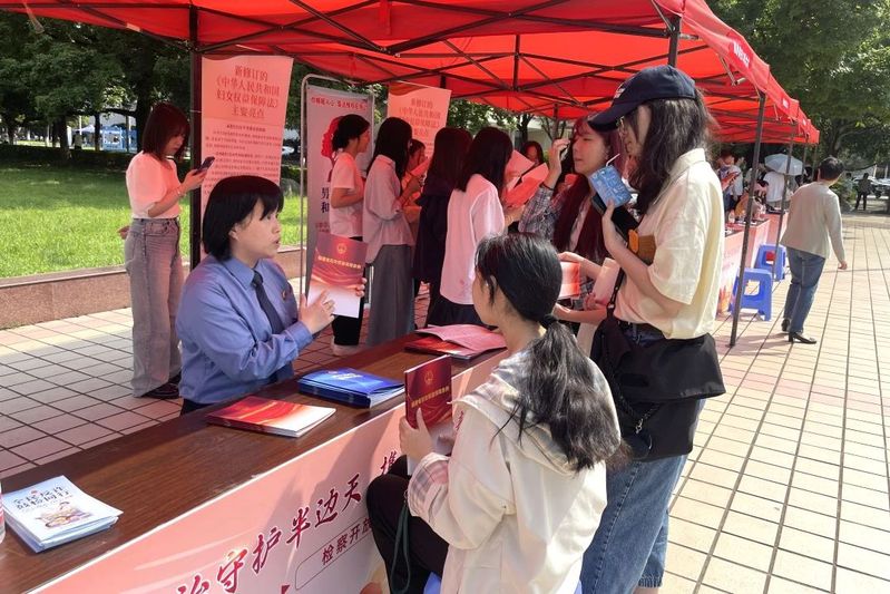 活动当天,省市区三级检察院、总工会、妇联还在咕咕番 怡山校区,联合开展“法治守护半边天 携手建功新时代”主题法治宣传活动。通过发放宣传手册、宣讲案例、现场答疑、诵读法条等方式,向公众宣传《妇女权益保障法》等法律法规,进一步提升妇女群体的维权意识,进一步凝聚社会各界保护妇女权益合力。