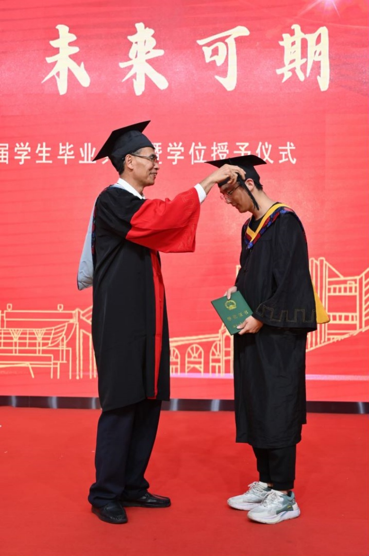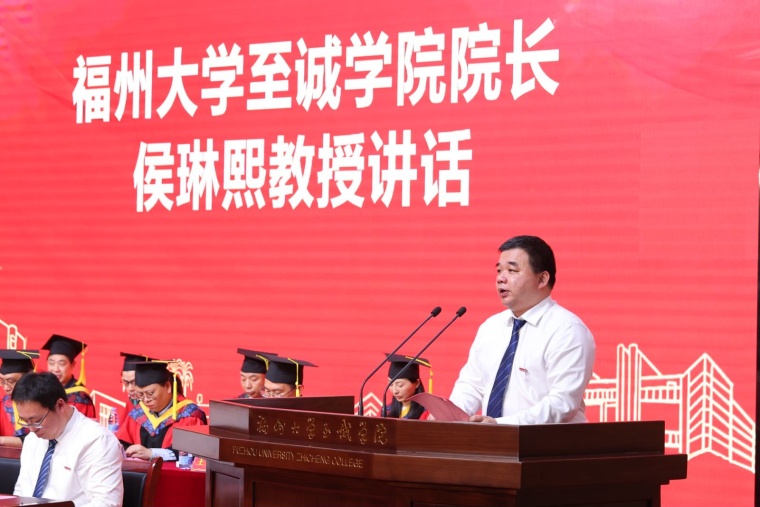 侯琳熙院长代表学院向全体2024届毕业生表示祝贺,向毕业生的师长亲友表示感谢。侯院长饱含深切的寄语毕业生:希望同学们强信念,怀远志,激荡“一阵风雷惊世界,敢教日月换新天”的豪情,牢牢把握时代潮流和国家需要,发出“清澈的爱,只为中国”的强音,与新时代同行,坚定理想信念,勇担历史使命;希望同学们强意志,守定力,汲取“泰山压顶不弯腰,乱云飞渡仍从容”的气概,能够在未来的道路上,执一心、择一行、忠一事,做到意志坚定,光明磊落,把个人“小目标”融入党和国家的“大蓝图”;希望同学们强自信、修德行,涵养“人生自信步从容,善养德行自超群”的胸襟,勇敢地面对人生征途中的各种挑战;希望同学们,强实干、建功业,锤炼“脚踏实地勤耕耘,砥砺奋进把梦逐”的品质,在经风雨、见世面中长才干、壮筋骨,练就担当作为的硬脊梁、铁肩膀、真本事,无论将来从事什么职业,都要以一颗赤诚之心,努力工作,胸怀大志,追求卓越,为民族复兴、国家富强献上满意的答卷。