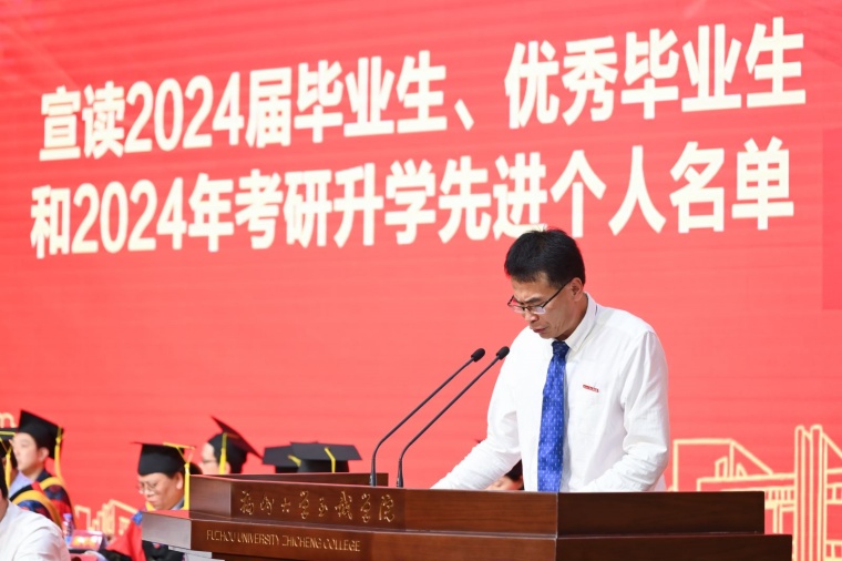 毕业典礼在雄壮的国歌声中拉开帷幕。游毅副院长首先宣读咕咕番 2024届毕业生名单、优秀毕业生名单和2024年考研升学先进个人名单。随后院领导为优秀毕业生代表、考研升学先进个人代表颁发荣誉证书。