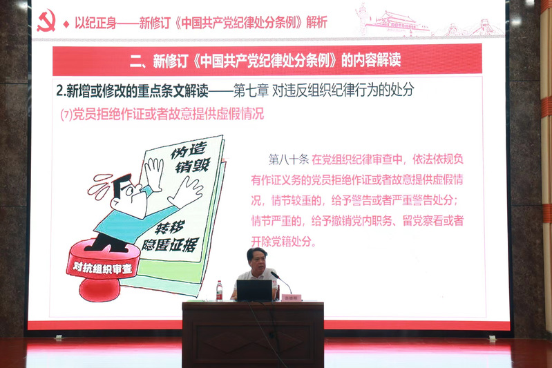 5月29日上午,学院在科报厅举办党纪学习教育专题党课暨师生党员基本培训集中授课,院纪委书记翁德顺作“以纪正身——新修订《中国共产党纪律处分条例》解析”专题党课。第一党总支、第二党总支、第四党总支、第五党总支、经济管理系党总支、人文艺术系党总支、计算机工程系党总支师生党员300余人参加党课。