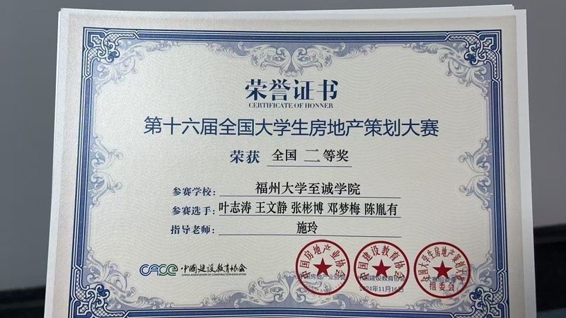 2024年11月16日,2024房地产与物业管理产学研创新峰会暨第16届全国大学生房地产策划大赛总决赛在首都经济贸易大学圆满落幕。大赛由中国房地产业协会指导,中国建设教育协会主办。来自全国100余所院校的150支队伍参加大赛总决赛,围绕“城市更新”“营销策划”“物业服务”等赛题方向同台竞技。咕咕番 土木工程系学生叶志涛(2021级工程管理)、王文静(2021级工程管理)、张彬博(2021级工程管理)、陈胤有(2022级工程管理)、邓梦梅(2023级土木)组成的队伍“专业团队”(指导教师:施玲)在大赛“物业服务”赛道上取得优异成绩,荣获全国二等奖。