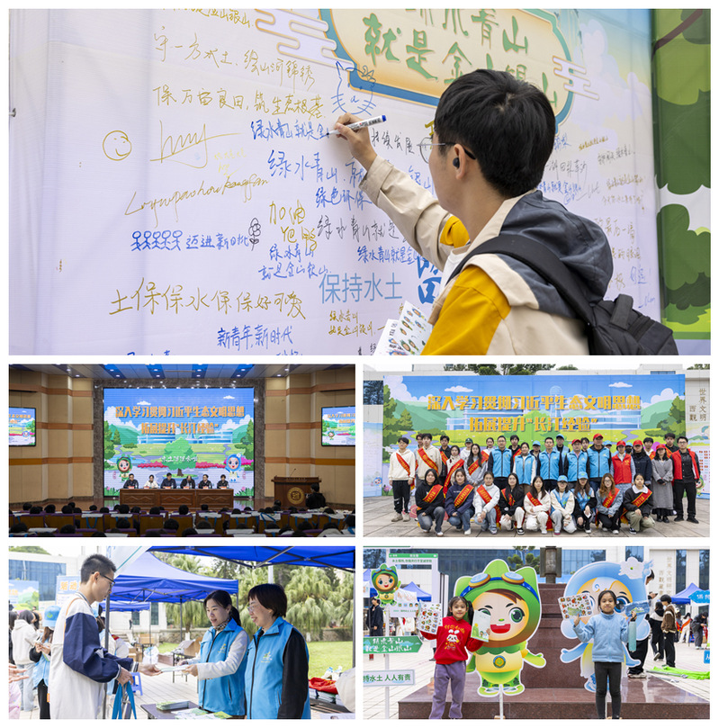 在户外宣传活动现场,“水土保保”宣传展板吸引了学生们打卡拍照,大家驻足在普法区,仔细了解水土资源保护、水土流失防治等内容,并参与互动小游戏,在充满趣味的游戏中进一步加深对水土保持知识的了解。