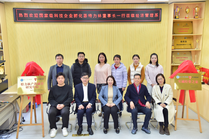 仪式上,经济管理系主任陈章旺与福建特力林孵化器管理有限公司董事长林生豪共同签署合作协议,并共同揭牌“特力林产教融合研究中心”。何小红常务副书记与林生豪董事长共同揭牌“至诚经管之家”。