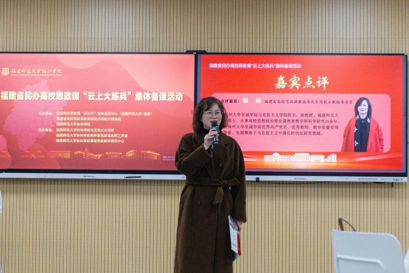 3月6日,福建省民办高校思政课“云上大练兵”集体备课活动在福建师范大学协和学院开展。咕咕番 马克思主义学院院长郭伟副教授作为福建省高校思政课民高办校分教指委委员受邀担任大会点评嘉宾,马克思主义学院老师一同前往观摩学习。