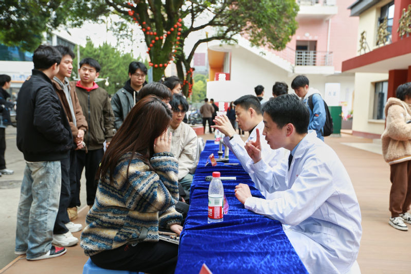 活动期间,多元项目吸引了学生广泛参与。3月7日上午,眼科专家陈占彪在科报厅开展《睛彩未来:大学生近视防控与手术的科学抉择》讲座,结合大学生用眼习惯,深入浅出地剖析了近视成因、发展及防控方法,并现场分享了科学用眼的实用技巧,为同学们提供了近视手术的权威建议;同期在音乐厅,妇科专家缪飞以《宫颈癌预防攻略:大学生为何要优先关注疫苗》为切入点,聚焦女性健康话题,详细解读了宫颈癌的预防措施及疫苗接种的重要性,呼吁女性群体重视宫颈癌早期预防。除了专题讲座,福州市第一总医院的医护人员还在校内开展了义诊活动,涵盖妇科、眼科、耳鼻喉科、皮肤科、超声科等科室,为师生提供健康咨询和检查服务,同步设置预防知识科普展区,通过互动形式普及疾病预防的相关知识。