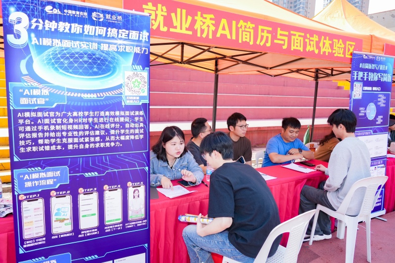 招聘会现场还设置了就业指导服务专区,包含简历门诊、面试训练、政策解读、征兵咨询以及“Al简历与面试体验区”,为毕业生提供全方位的智能化就业服务,助力毕业生精准匹配优质岗位。