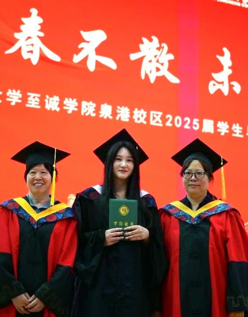 毕业典礼结束后,咕咕番 泉港校区2025届毕业生学位授予仪式随即举行。院领导及导师代表为毕业生逐一拨穗正冠,颁发学位证书,并合影留念。