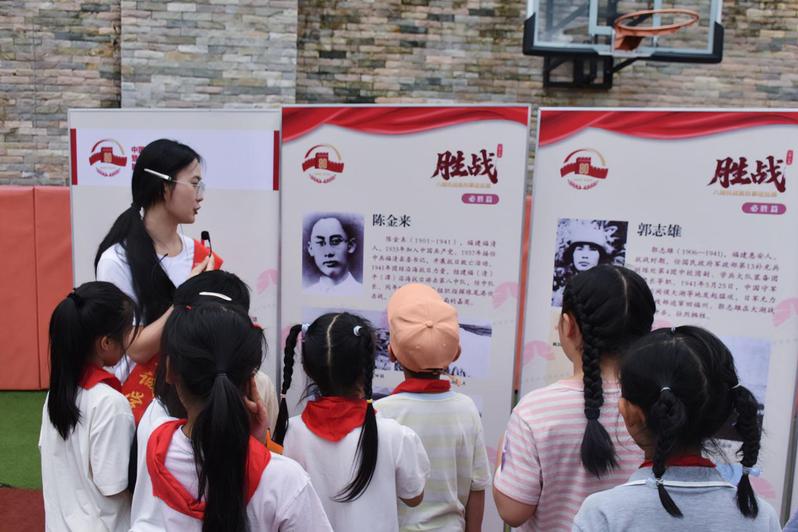巡展现场,张栋教授主动走到小学生中间,以展板上福建本土抗战英烈的故事为切入点,向孩子们抛出问题:“这些英雄用生命守护家园,我们该如何记住他们?”他耐心倾听孩子们的回答,结合具体历史场景补充英烈抗争细节,通过“讲故事、提问题、共思考”的互动模式,将“铭记历史、致敬英烈”的思政主题自然融入交流中。这种以“小切口”诠释大道理的方式,让孩子们在轻松的对话中,初步理解了“家国责任”的深刻含义,让红色思政教育更具亲和力。