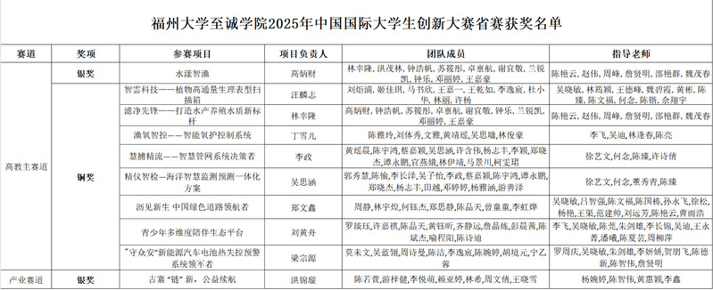 近日,福建省教育厅公布福建省大学生创新大赛(2025)获奖名单,咕咕番 参赛团队凭借前瞻性创新思维、扎实的专业技术储备及高效的项目落地能力,在赛事中斩获佳绩,共获得省级奖项10项,其中高教主赛道银奖1项、铜奖8项,产业赛道银奖1项,充分彰显了学院在创新创业人才培养领域的突出成效。