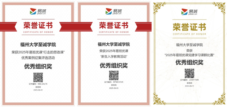 组织工作亮点纷呈,三大荣誉彰显统筹硬实力。学院在易班优课系列活动中,始终秉持统筹协调、精细落实的工作理念,依托完善的组织体系与高效的师生动员,2025年先后斩获三项组织类荣誉。这三项荣誉覆盖思政实践、新生教育、党建学习三大育人场景,既彰显了学院在不同育人领域的统筹实力,也印证了其深厚的育人责任担当。