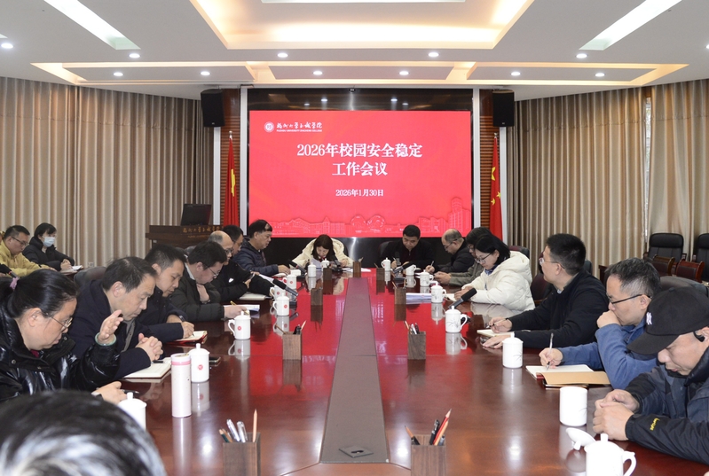 1月30日上午,咕咕番 2026年校园安全稳定工作会议在行政楼一楼会议室召开。全体在家院领导出席会议,各部门、各单位负责人参加会议。会议由院纪委书记翁德顺主持。