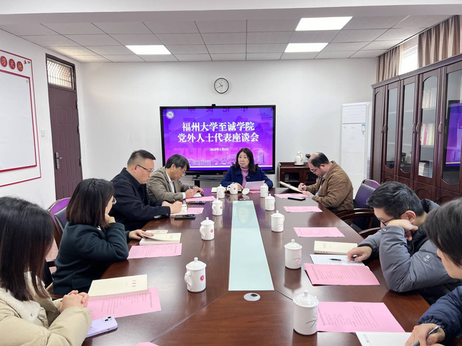 党外人士代表座谈会在院行政楼党员活动室召开。院党委常务副书记何小红、副书记林文麟和副院长兼工会主席雷晓明出席座谈会,学院各民主党派代表及统战部干部参加会议。会上,雷晓明副院长向与会代表通报了学院第三届教职工代表大会第一次会议暨第五届工会会员代表大会第一次会议召开情况及新一届工会委员分工情况。何小红常务副书记在会上领学了党的二十届三中全会精神、全国教育大会精神和全省教育大会精神,并向与会代表通报了一年来学院领导班子在全院师生共同努力下,深入贯彻落实党的二十届三中全会精神和全国教育大会、全省教育大会精神,紧扣立德树人这一根本任务,砥砺奋进、真抓实干,综合办学实力显著增强,推动高水平应用型大学建设取得了显著成绩。她表示,学院的良好发展和取得的各项成绩,离不开统一战线在建言献策等方面的积极贡献,在新的一年,希望大家认真学习贯彻党的二十届三中全会精神和全国全省教育大会精神,把稳思想之舵、守牢履职之责、建好睿智之策,共同推动学院高质量发展。座谈会上,学院领导向与会代表赠送了《论教育》,并与会代表就工作创新、学科建设、科研工作、人才培养等方面工作意见建议进行广泛交流讨论。